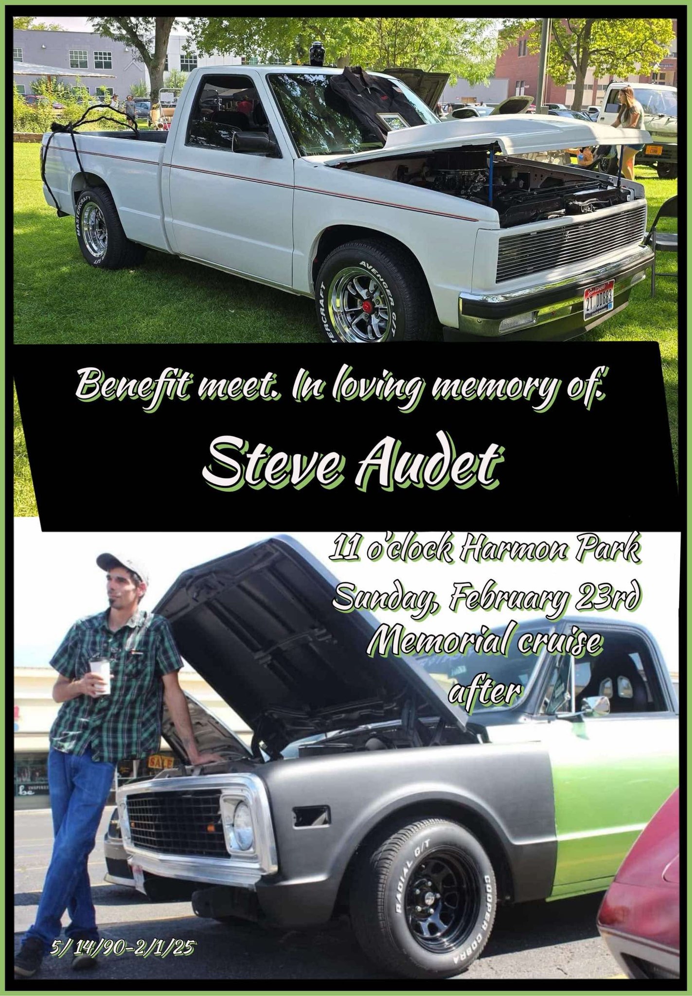 Steve Audet Memorial Car Show The Steve Audet Memorial Car Show is Sunday at 11am at Harmon Park, 450 Locust Street South. + Add to Google Calendar + iCal / Outlook export Tags: Car Show, Twin Falls Date Feb 23 2025 Expired! Time 11:00 am Location Harmon Park - Twin Falls 450 Locust St S Twin Falls, ID 83301 Category Car Show Share this event Search for: Search Please Support our Sponsors!The Official Transporter of Idaho Car CultureThe Detail Doctors Call 208-891-0899
