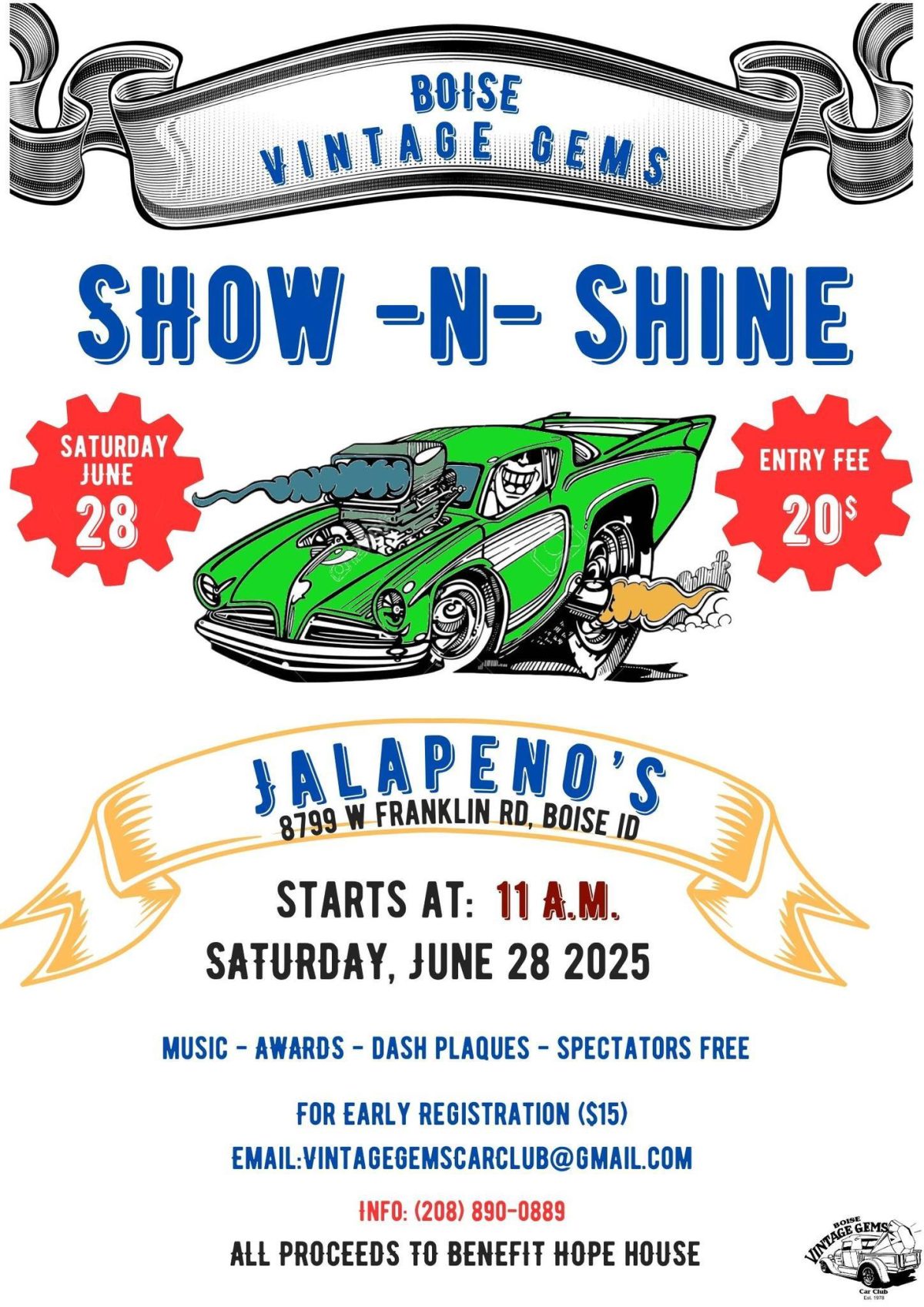 The Boise Vintage Gems Show N Shine is Saturday at 11am at Jalapenos Restaurant, 8799 West Franklin Road.