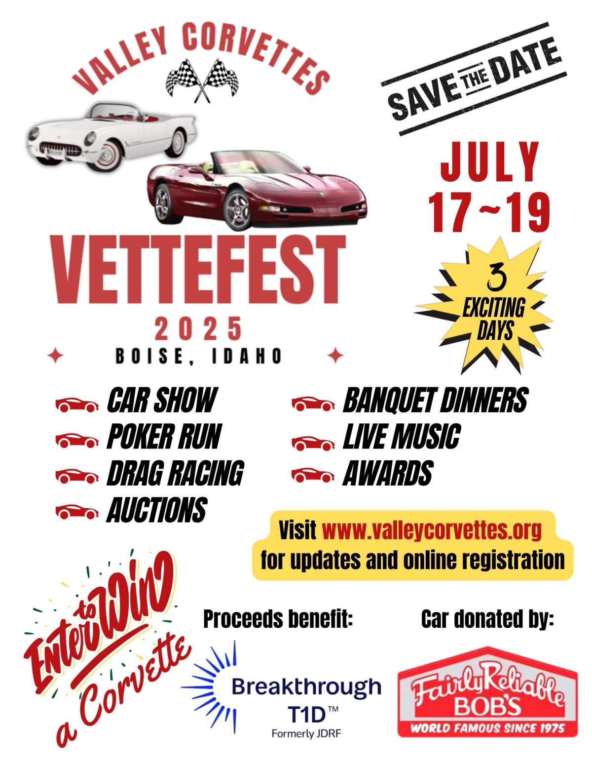 The Valley Corvettes Vettefest 2025 is Thursday to Saturday at Firebird Raceway, 8551 Idaho State Highway 16.